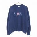 XL★古着 長袖 スウェット メンズ 90年代 90s イルカ ハワイ 刺繍 クルーネック USA製 紺 ネイビー 25feb18 中古 スエット トレーナー トップス