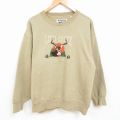 【50%OFF】XL★古着 長袖 スウェット メンズ 00年代 00s 鹿 刺繍 クルーネック ベージュ カーキ 25feb19 中古 スエット トレーナー トップス
