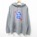 【商品名】 XL★古着 長袖 スウェット パーカー メンズ パブストブルーリボン ビール 大きいサイズ グレー 霜降り