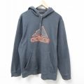 【商品名】 XL★古着 アディダス adidas 長袖 スウェット パーカー メンズ ビッグロゴ クルーネック 濃グレー 霜降り
