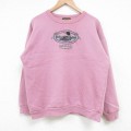 【商品名】 M★古着 長袖 スウェット メンズ 90年代 90s 鳥 刺繍 クルーネック カナダ製 ピンク