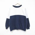 【商品名】 L★古着 長袖 スウェット メンズ 00年代 00s 無地 ツートンカラー クルーネック 紺他
