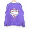 L★古着 リー Lee 長袖 スウェット メンズ 90年代 90s 野球 刺繍 クルーネック USA製 紫