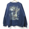 XL★古着 長袖 スウェット メンズ 90年代 90s シカ 木 クルーネック 紺