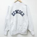 【商品名】 L★古着 長袖 スウェット メンズ 90年代 90s GENESEO 刺繍 クルーネック USA製 薄グレー 霜降り