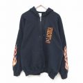 XL★古着 長袖 スウェット パーカー メンズ アイスホッケー 刺繍 大きいサイズ 黒