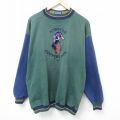 L★古着 長袖 スウェット メンズ 00年代 00s クマ 刺繍 クルーネック 濃緑