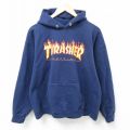 【商品名】 L★古着 スラッシャー THRASHER 長袖 スウェット パーカー メンズ ビッグロゴ 紺【spe】