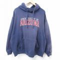 【商品名】 XL★古着 長袖 スウェット パーカー メンズ アリゾナ 大学 刺繍 ボロ 大きいサイズ 紺 フード内側サーマル