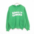 XL★古着 長袖 スウェット メンズ ボストン 大きいサイズ クルーネック 緑