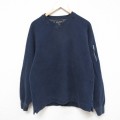 L★古着 長袖 スウェット メンズ 90年代 90s 無地 Vネック 紺