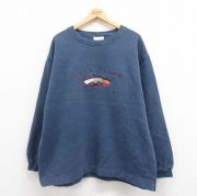 XL★古着 長袖 スウェット メンズ 00年代 00s 魚 大きいサイズ クルーネック 紺