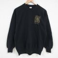 M★古着 長袖 スウェット メンズ 90年代 90s ワシントン 花 刺繍 クルーネック USA製 黒