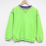 L★古着 長袖 スウェット メンズ 90年代 90s 無地 クルーネック 黄緑