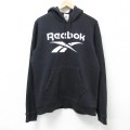 M★古着 リーボック REEBOK 長袖 スウェット パーカー メンズ ビッグロゴ 黒 ブラック 25mar06 中古 スエット トレーナー トップス