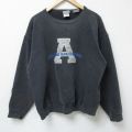 XL★古着 長袖 スウェット メンズ 90年代 90s アリゾナ 刺繍 鹿の子 ボロ クルーネック USA製 黒 ブラック 25mar13 中古 スエット トレーナー トップス