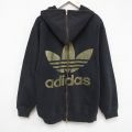 【商品名】 XL★古着 アディダス adidas ジェレミースコット 長袖 フルジップ スウェット パーカー メンズ リーフ トレフォイル 大きいサイズ クルーネック 黒【spe】