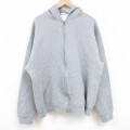 【商品名】 L★古着 ラッセル 長袖 フルジップ スウェット パーカー メンズ 00年代 00s 無地 グレー 霜降り【spe】