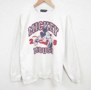 XL★古着 長袖 スウェット メンズ 00年代 00s ディズニー DISNEY ミッキー MICKEY MOUSE 刺繍 クルーネック 白