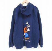 XL★古着 長袖 フルジップ スウェット パーカー メンズ 00年代 00s ディズニー DISNEY グーフィー 刺繍 大きいサイズ 紺