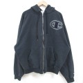 【商品名】 XL★古着 チャンピオン Champion 長袖 フルジップ スウェット パーカー メンズ 00年代 00s ビッグロゴ 黒【spe】