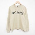 【商品名】 L★古着 コロンビア Columbia 長袖 スウェット メンズ ビッグロゴ クルーネック ベージュ