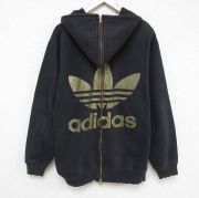 XL★古着 アディダス adidas ジェレミースコット 長袖 フルジップ スウェット パーカー メンズ リーフ トレフォイル 大きいサイズ クルーネック 黒