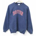L★古着 長袖 スウェット メンズ 00年代 00s ボストン クルーネック 紺
