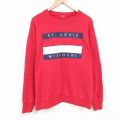 XL★古着 トミーヒルフィガー TOMMY HILFIGER 長袖 ブランド スウェット メンズ 90年代 90s ワンポイントロゴ 大きいサイズ クルーネック 赤