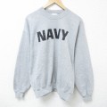 【商品名】 L★古着 長袖 スウェット メンズ 90年代 90s ミリタリー ネイビー NAVY クルーネック USA製 グレー 霜降り