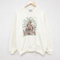 L★古着 長袖 スウェット メンズ 00年代 00s 鳥 葉 クルーネック 白