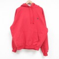 XL★古着 チャンピオン Champion 長袖 スウェット パーカー メンズ ワンポイントロゴ クルーネック 赤