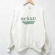 L★古着 ジャージーズ 長袖 スウェット メンズ 00年代 00s アイルランド 刺繍 クルーネック 薄ベージュ