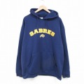 XL★古着 長袖 スウェット パーカー メンズ NHL バッファローセイバーズ 刺繍 大きいサイズ 紺 アイスホッケー