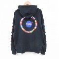 【商品名】 XL★古着 長袖 スウェット パーカー メンズ NASA 国旗 日の丸 星条旗 黒【spe】