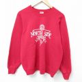 L★古着 長袖 スウェット メンズ 80年代 80s 葉 ラグラン クルーネック USA製 赤