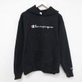 L★古着 チャンピオン Champion 長袖 スウェット パーカー メンズ ビッグロゴ 刺繍 黒