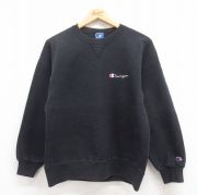 L★古着 チャンピオン Champion 長袖 スウェット メンズ ワンポイントロゴ クルーネック 黒