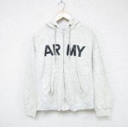 S★古着 長袖 フルジップ スウェット パーカー メンズ 90年代 90s ミリタリー アーミー ARMY タロン 薄グレー 霜降り
