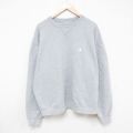 XL★古着 長袖 スウェット メンズ 00年代 00s 刺繍 大きいサイズ クルーネック グレー 霜降り