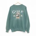 【商品名】 XL★古着 長袖 スウェット メンズ 90年代 90s ゴルフ クルーネック 緑 霜降り
