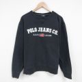 【20%OFF】XL★古着 ラルフローレン Ralph Lauren ポロジーンズ 長袖 ブランド スウェット メンズ 90年代 90s ビッグロゴ 刺繍 クルーネック 黒 ブラック 25apr17 中古 スエット トレーナー トップス