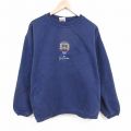 XL★古着 長袖 スウェット メンズ 00年代 00s 釣り 刺繍 大きいサイズ クルーネック 紺