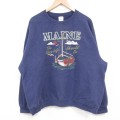XL★古着 長袖 スウェット メンズ 90年代 90s ヨット MAINE クルーネック USA製 濃紺 ネイビー 25may02 中古 スエット トレーナー トップス