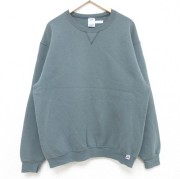 L★古着 ラッセル 長袖 スウェット メンズ 00年代 00s 無地 クルーネック 薄緑