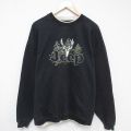XL★古着 長袖 スウェット メンズ バイク 大きいサイズ クルーネック 黒