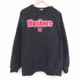 【商品名】 XL★古着 長袖 スウェット メンズ ネブラスカハスカーズ 大きいサイズ クルーネック 黒