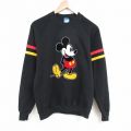 【商品名】 L★古着 長袖 スウェット メンズ 80年代 80s ディズニー ミッキー フロッキープリント ラグラン クルーネック USA製 黒【spe】