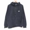 XL★古着 ナイキ NIKE 長袖 フルジップ スウェット パーカー メンズ ワンポイントロゴ 大きいサイズ 黒 ブラック 25may24 中古 スエット トレーナー トップス