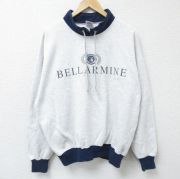 XL★古着 長袖 スウェット メンズ 90年代 90s ベラ―マイン カレッジ モックネック ハイネック 薄グレー 霜降り